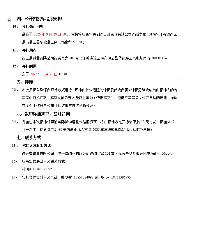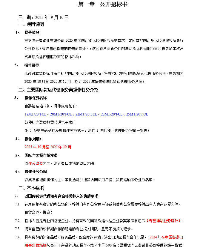 連云港堿業(yè)有限公司集裝箱國際貨運代理服務(wù)商項目招標(biāo)公告
