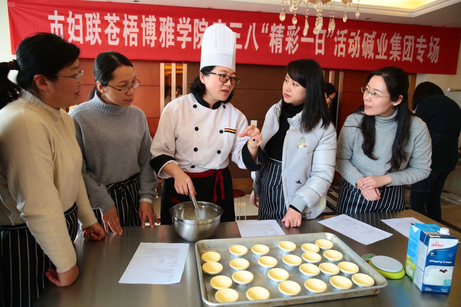 烘焙培訓(xùn)中,只見大家稱量、打蛋、調(diào)黃油,在老師的指導(dǎo)和幫助下,紛紛化身“小廚娘”,投身“甜蜜事業(yè)”。當(dāng)打開烤箱的那一刻,香味四溢,現(xiàn)場彌漫著快樂和幸福的味道。
