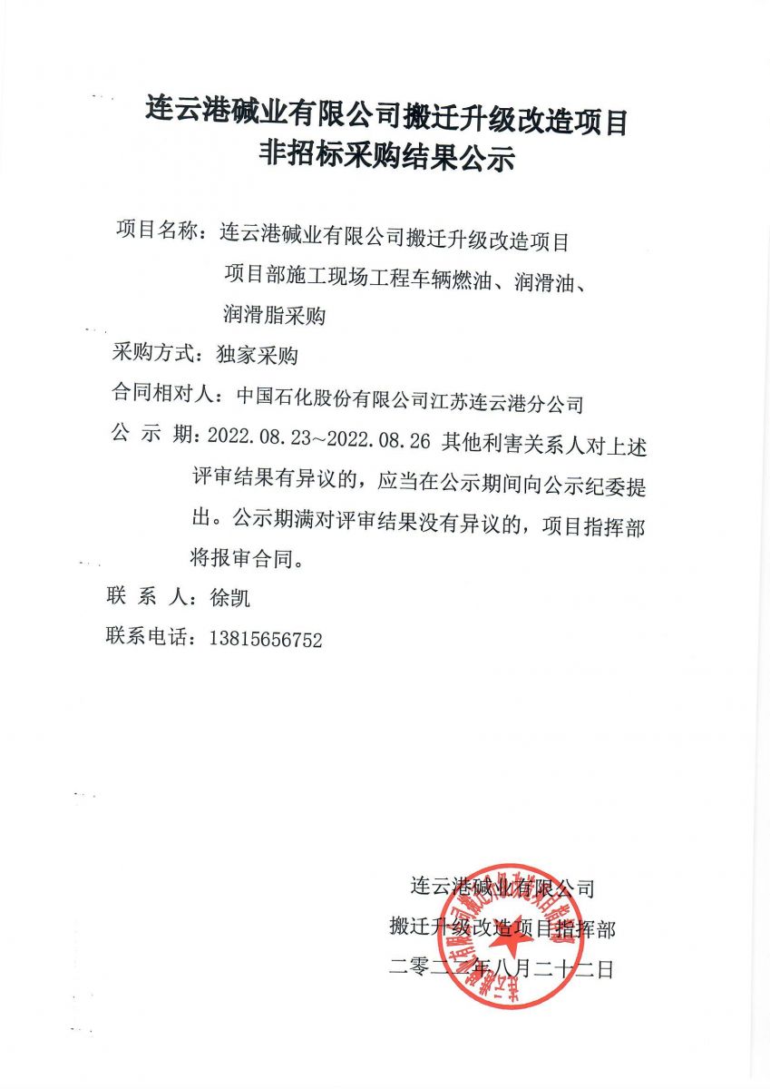 搬遷升級改造項目施工現(xiàn)場工程車輛燃油、潤滑油、潤滑脂采購結(jié)果公示