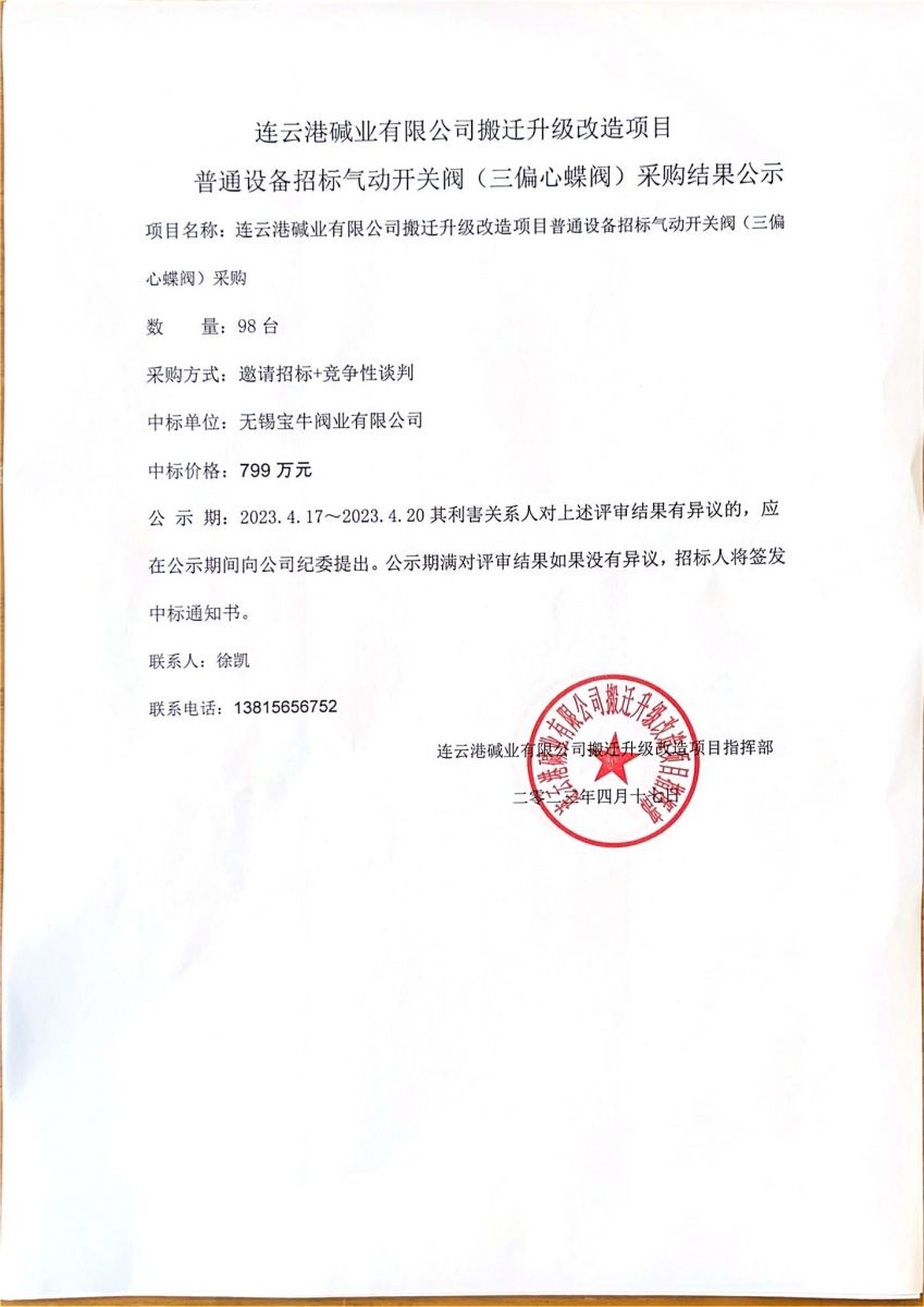 氣動開關(guān)閥(三偏心蝶閥)采購結(jié)果公示