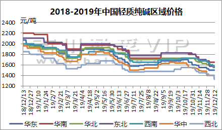 百川資訊及純堿公平貿(mào)易工作站:(2019.12.6-12.12)輕質(zhì)純堿出廠價格走勢圖